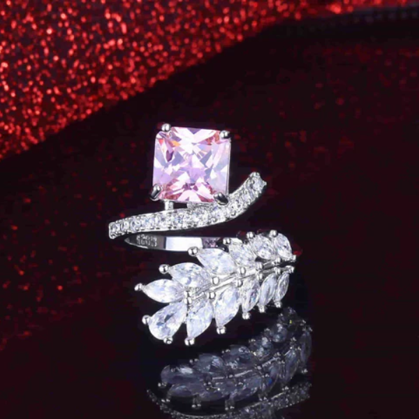 Elevate Your Style with the Pink Square Leaf’s Adjustable Ring