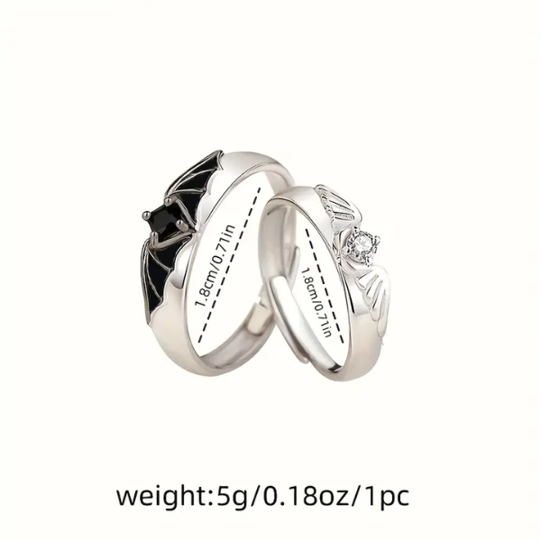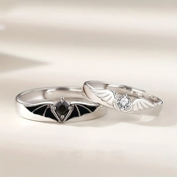 Elevate your style and showcase your connection with the stunning Wing Open Ring, designed for both men and women. This fashionable ring elegantly portrays the duality of love, featuring intricate designs of a demon and angel. Ideal for those who appreciate artistry and symbolism, this couple ring embodies the eternal dance between contrasting elements, making it a cherished accessory for anyone who wears it.