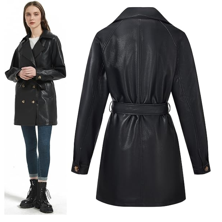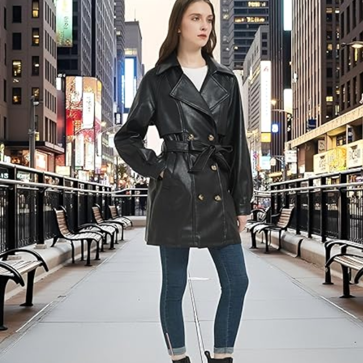 Is jacket ka tailored casual fit aapki body shape ko enhance karta hai, aur ye jeans, trousers, skirts aur dresses ke sath effortlessly pair ho jata hai. A must-have vegan leather coat for women jo comfort aur fashion dono ko combine karta hai.